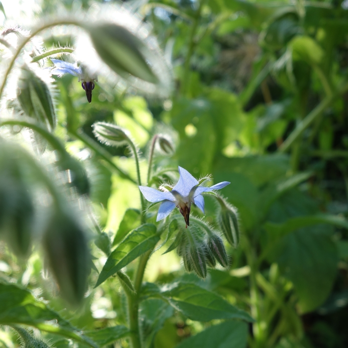 Klammheimlich übernimmt im hinteren Gartenteil der blaublütige Borretsch das Regime. Er gedeiht zu stattlichen Gewächsen mit haarigen, fleischigen Blättern und unzähligen sternförmigen blauen und manchmal weißen Blüten. Der Borretsch ist die perfekte blackbox-Pflanze: blüht den ganzen Sommer, ist ein Magnet für bestäubende Insekten und versamt sich reichlich von selbst.